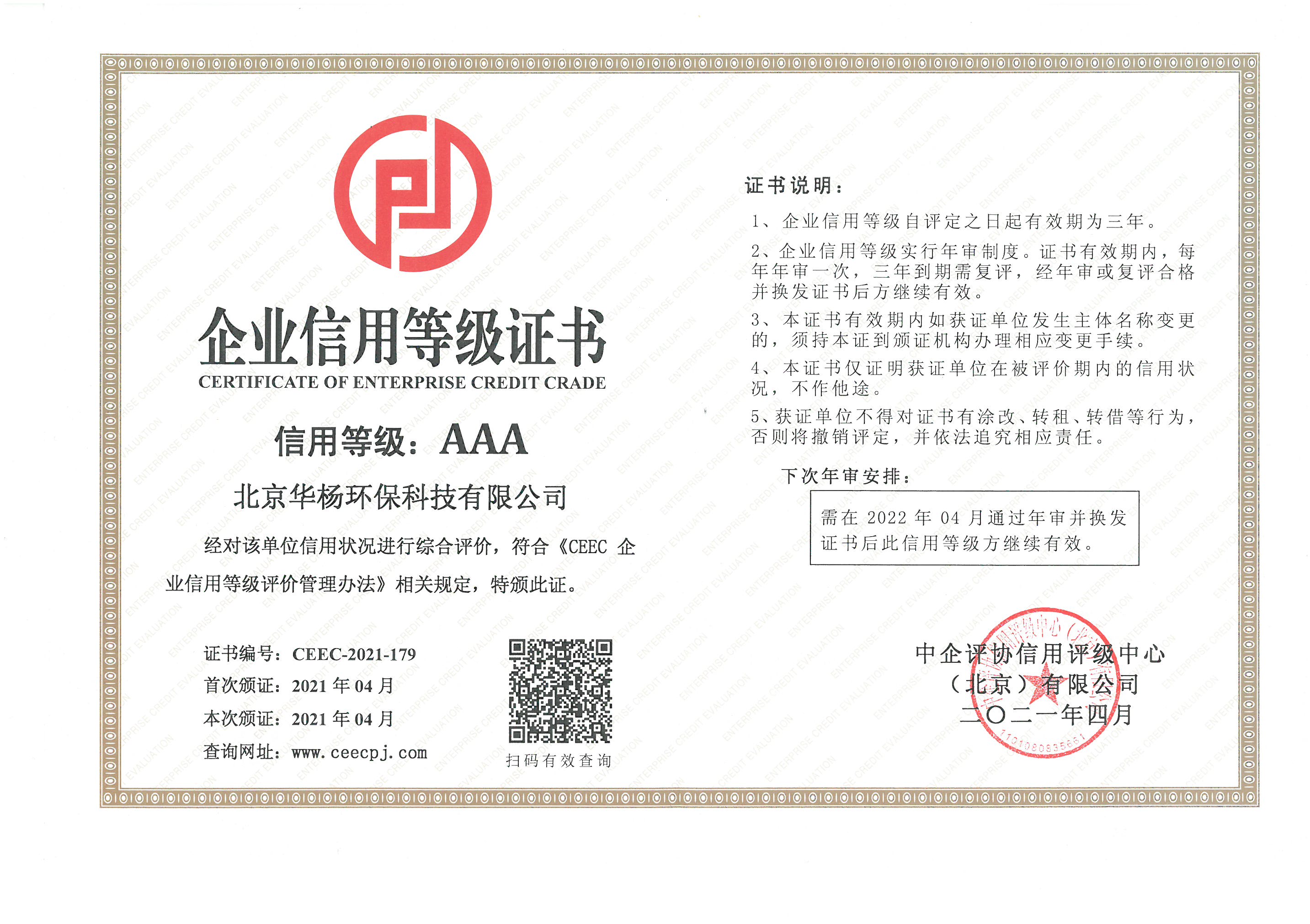 企业信用等级证书